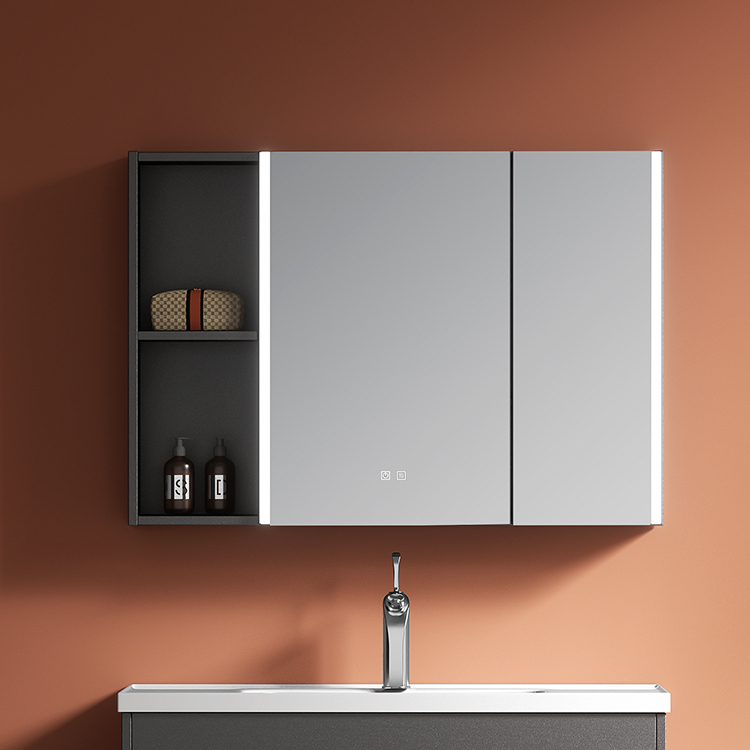 Tailored lighting experience: Easily achieved with the elegant anti fog aluminum mirror cabinet’s responsive control.