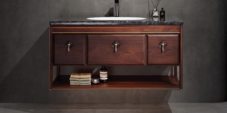Units like a bathroom washbasin with cabinet are essential in minimalist settings. They combine utility and form, providing counter space and under-sink storage while concealing pipes. These units contribute to a tidy, uncluttered bathroom environment.