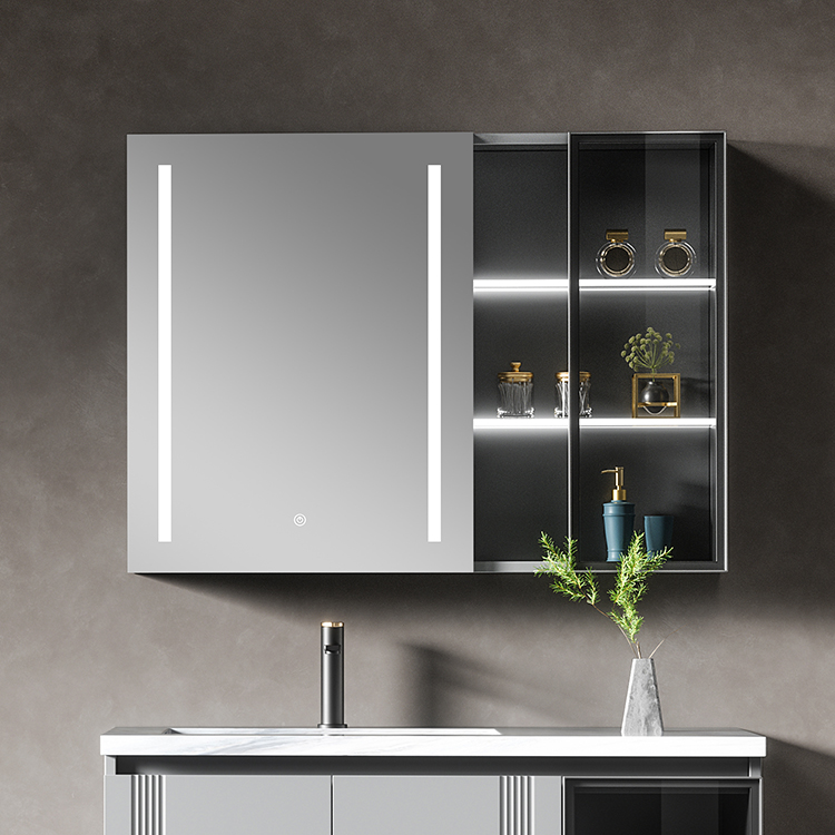 The brushed aluminum bathroom mirror cabinet features a refined brushed finish that adds texture and depth to any modern interior. Its fingerprint-resistant surface keeps the look clean and flawless. Designed to blend elegance and function, this brushed aluminum bathroom mirror cabinet suits minimalist spaces.